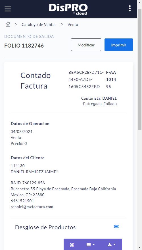 DisPRO Cloud, es un producto 100% Web, que se encuentra conectado directamente a una base de datos DisPRO, integrando de forma natural las funciones que DisPRO escritorio permite hacer.