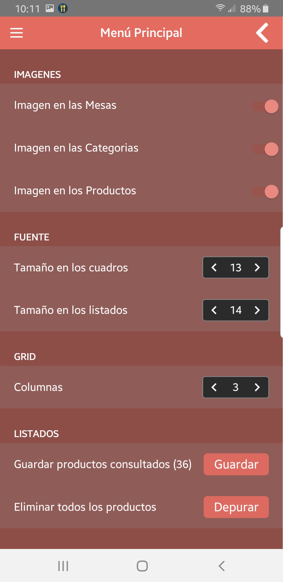 - Se pueden configurar los tamaños de las fuentes en los listados para ajustar al dispositivo