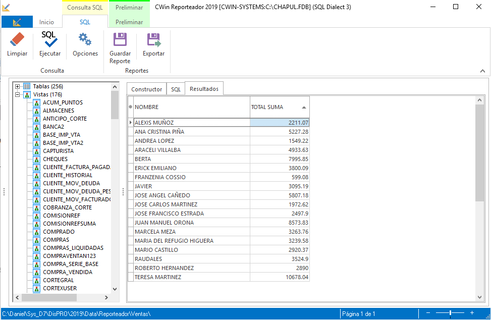 Genere los resultados del SQL en un listado que puede ser Exportado a Excel o bien impreso