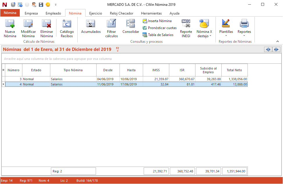 Nómina es un sistema para la administración y control de Nóminas de Salarios, Vacaciones, Aguinaldos, Utilidades, Finiquitos y Bonos. A través de asistentes que lo guían de manera inteligente para generar nominas, aún sin conocimientos avanzados en la materia, obtenga acumulados y diversos reportes...